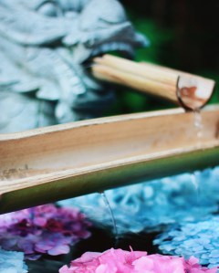 A hand washing fountain with Ajisai