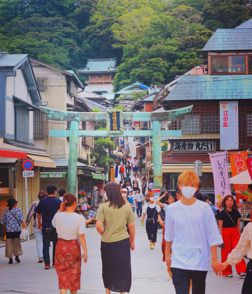Enoshima is a small island dedicated to the Buddhist Goddess Benzaiten. Legends say that it was this goddess of water that made this island rise from the sea many many moons ago. You will see several beautiful shrines as you climb towards the Enoshima Sea Candle dedicated to her and her husband, the dragon god. Water deities are often associated with the flowing motion of life, music, and conversation. So, if you want to pray to someone, I think they are a lively option!